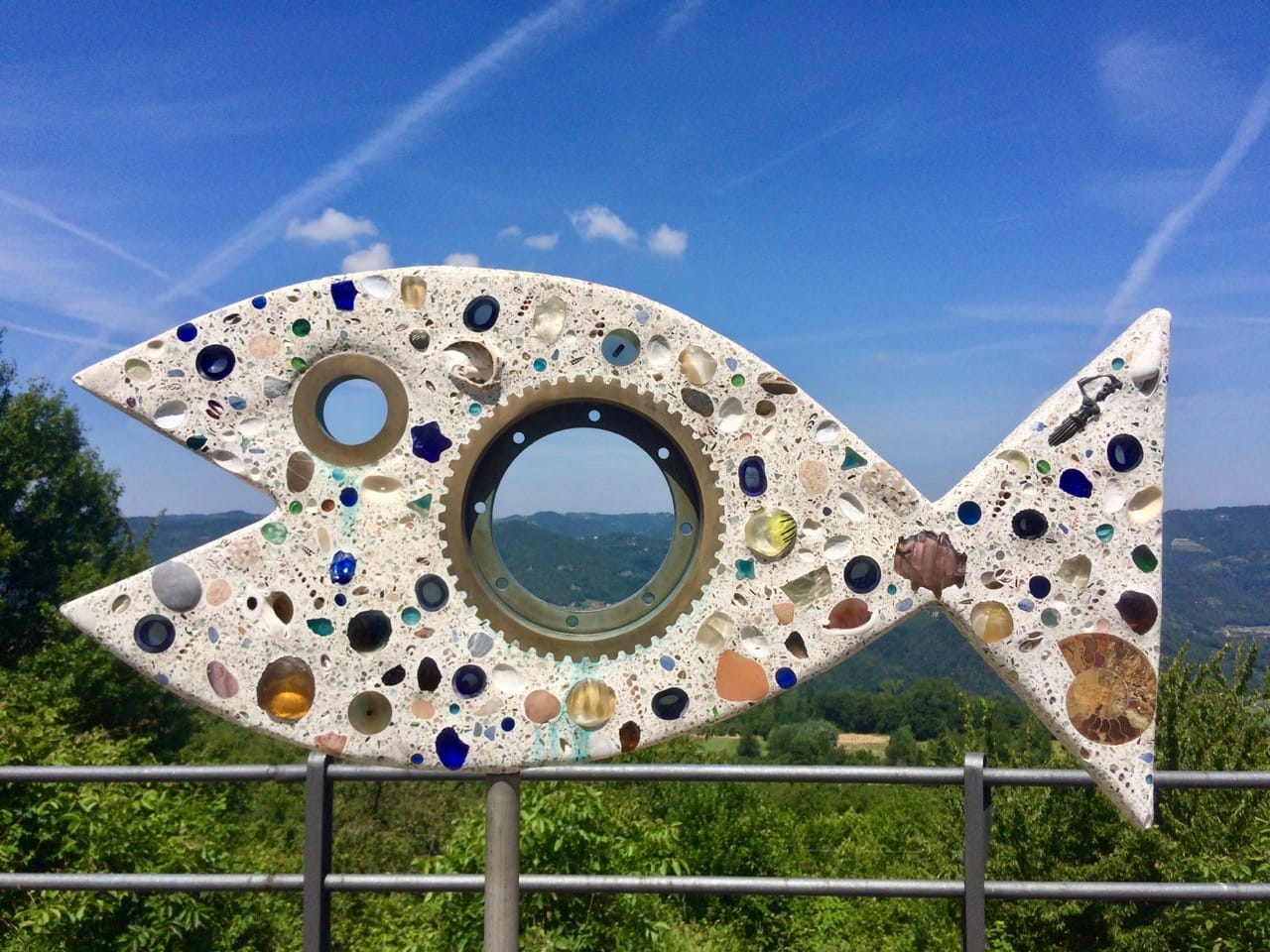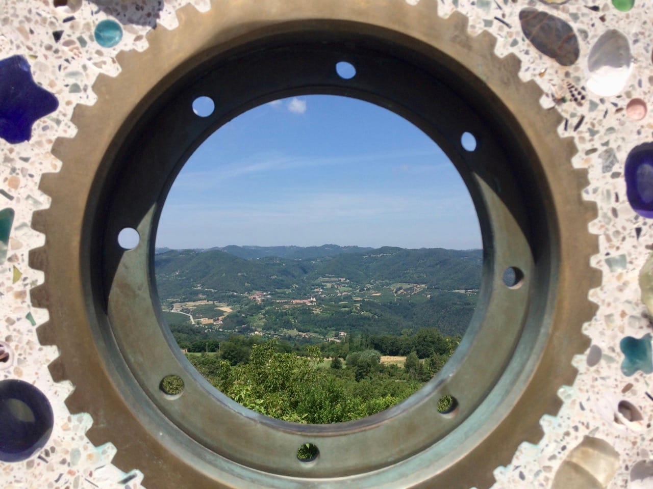 A sculpture showcasing Bergolo's views of Alta Langa and referencing the old Salt Roads that passed through here. Photos by Secret Piemonte