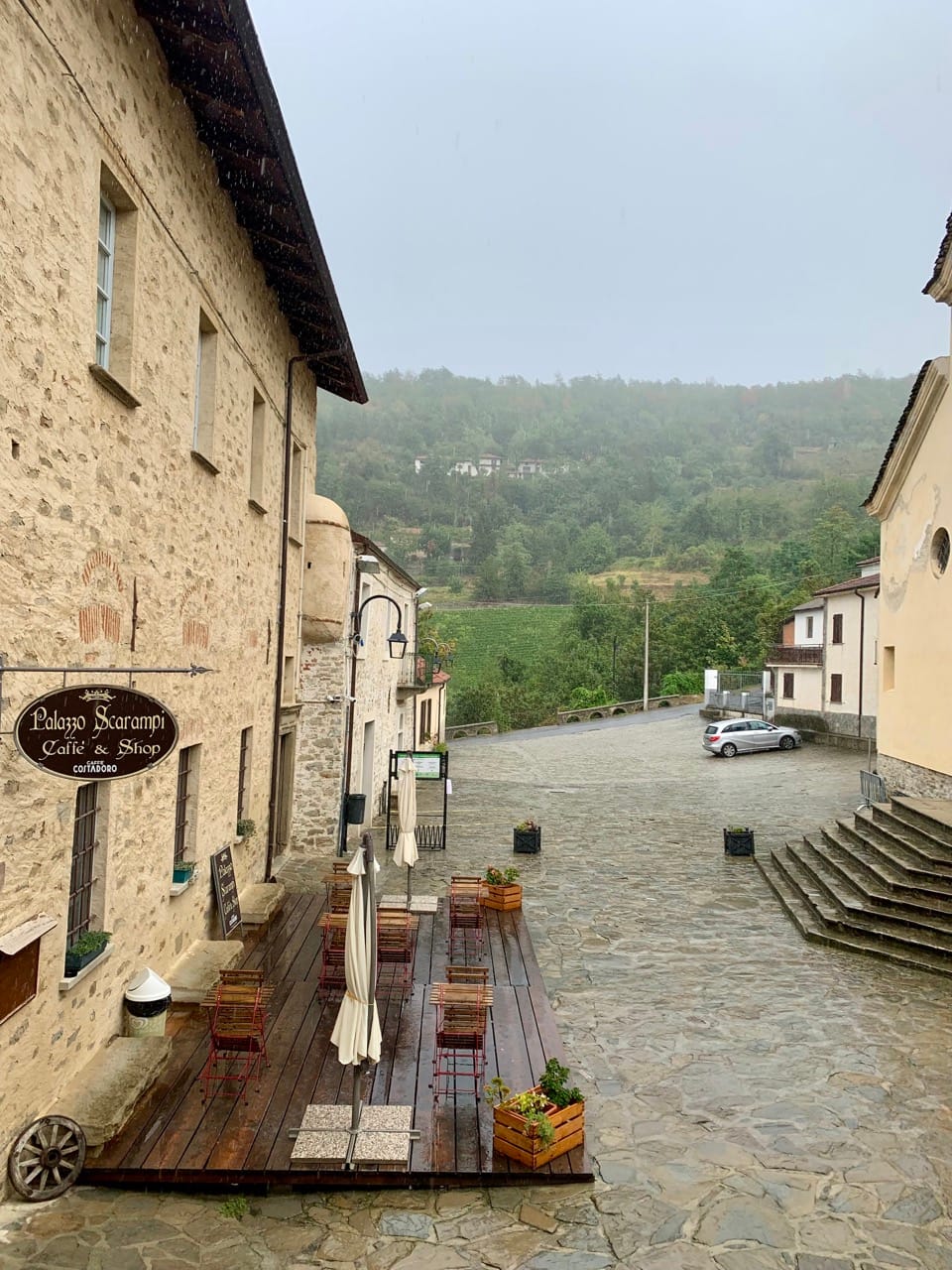 In one corner of the piazza, opposite the church, stands Palazzo Scarampi, a medieval house that reminds visitors of the area’s feudal past. From the hills above the village, views stretch across the high Alta Langa, and beyond that, the French Alps.