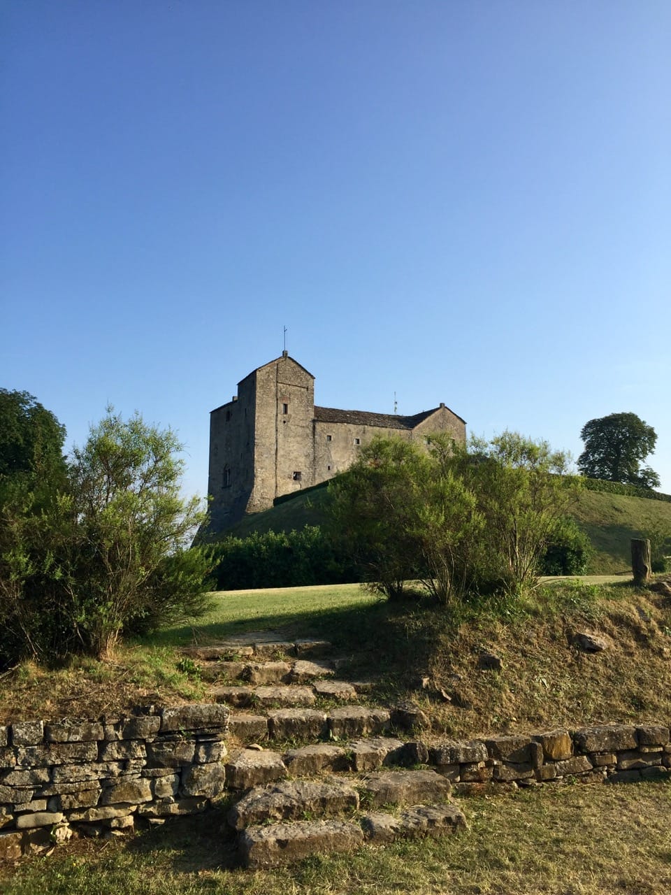 Prunetto’s medieval castle—one of the best preserved in the area—dominates the skyline, with the mountains clearly visible in the background as you approach from Levice.